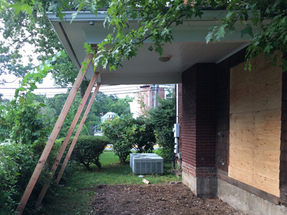 This open porch will be enclosed and become an office that will add signicantly to the beauty of the buildings environment.