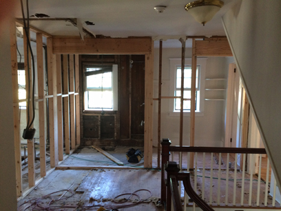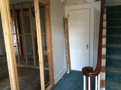 The original staircase from 1927 along with other original features such as the fireplace, windows and exterior details are being restored and preserved.