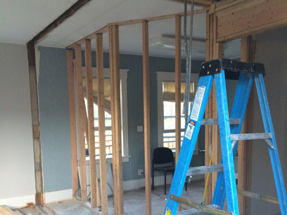 The entire framework and foundation construction has been completed and 12 offices are now being created in this two-story colonial-style historical building.